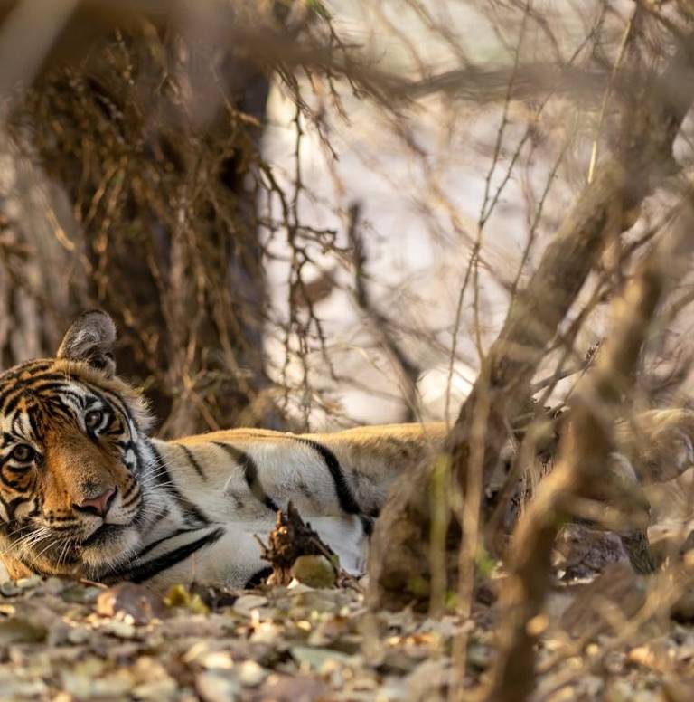 Deux safaris dédiés aux tigres du Bengale au Parc National de Ranthambore avec des guides naturalistes. Séjour au Ranthambore Heritage Haveli ou au Tigress Spa Resort.