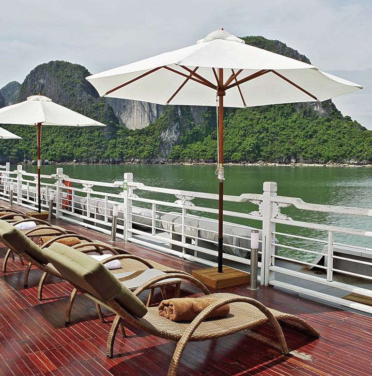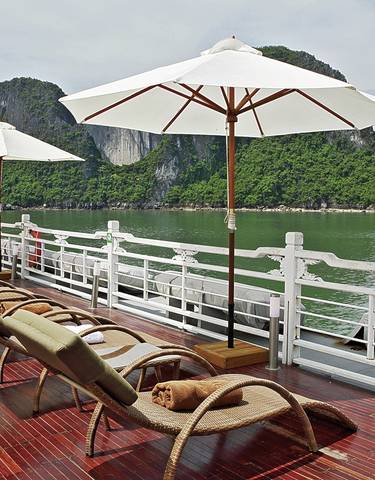 Le Pandora ou le Peony Cruise sillonnent la baie d'Halong. Au programme : grottes calcaires, couchers de soleil spectaculaires et Tai Chi matinal. Kayak disponible et cabines premium avec vue mer.