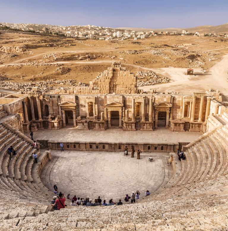 Périple culturel dans 5 villes : Amman, Jerash, Petra, Wadi Rum et Mer Morte. 6 petits déjeuners, 1 déjeuner, 1 dîner, 5 nuits en hôtels 3 étoiles et 1 nuit en campement bédouin.