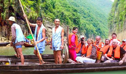 - Jour 8 Croisière sur le fleuve Yangtze : Les Trois Gorges, les gorges de Qutang et le sampan