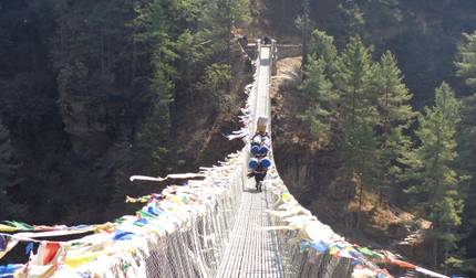 - Traversez des ponts suspendus sur Dudh Koshi