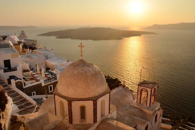 - Jour 9 Santorin : Fira et croisière au coucher du soleil dans la caldeira (1B, 1D)