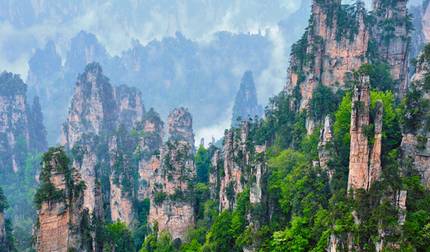 - Jour 8 Zhangjiajie : zone panoramique de Yuanjiajie, ascenseur de Bailong, réserve naturelle de la montagne de Tianzi, galerie de Ten-mile