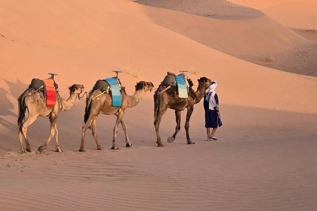 - Expérimentez une promenade à dos de chameau au coucher du soleil dans le Sahara