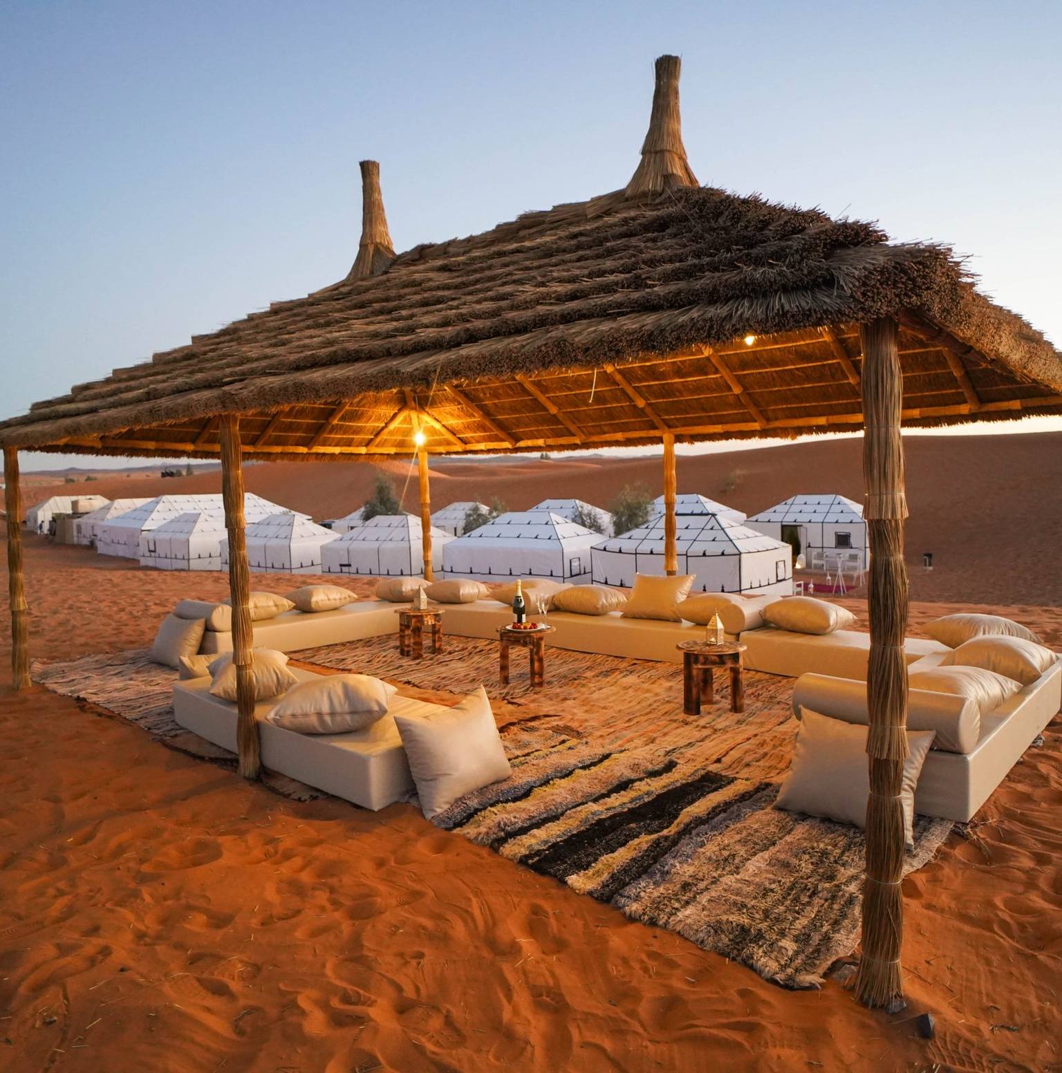 1 avis par les voyageurs de TourRadarL'Erg Chigaga Desert Camp vous accueille dans un cadre luxueux. Découvrez la kasbah souterraine de Tamegroute et admirez des couchers de soleil inoubliables.